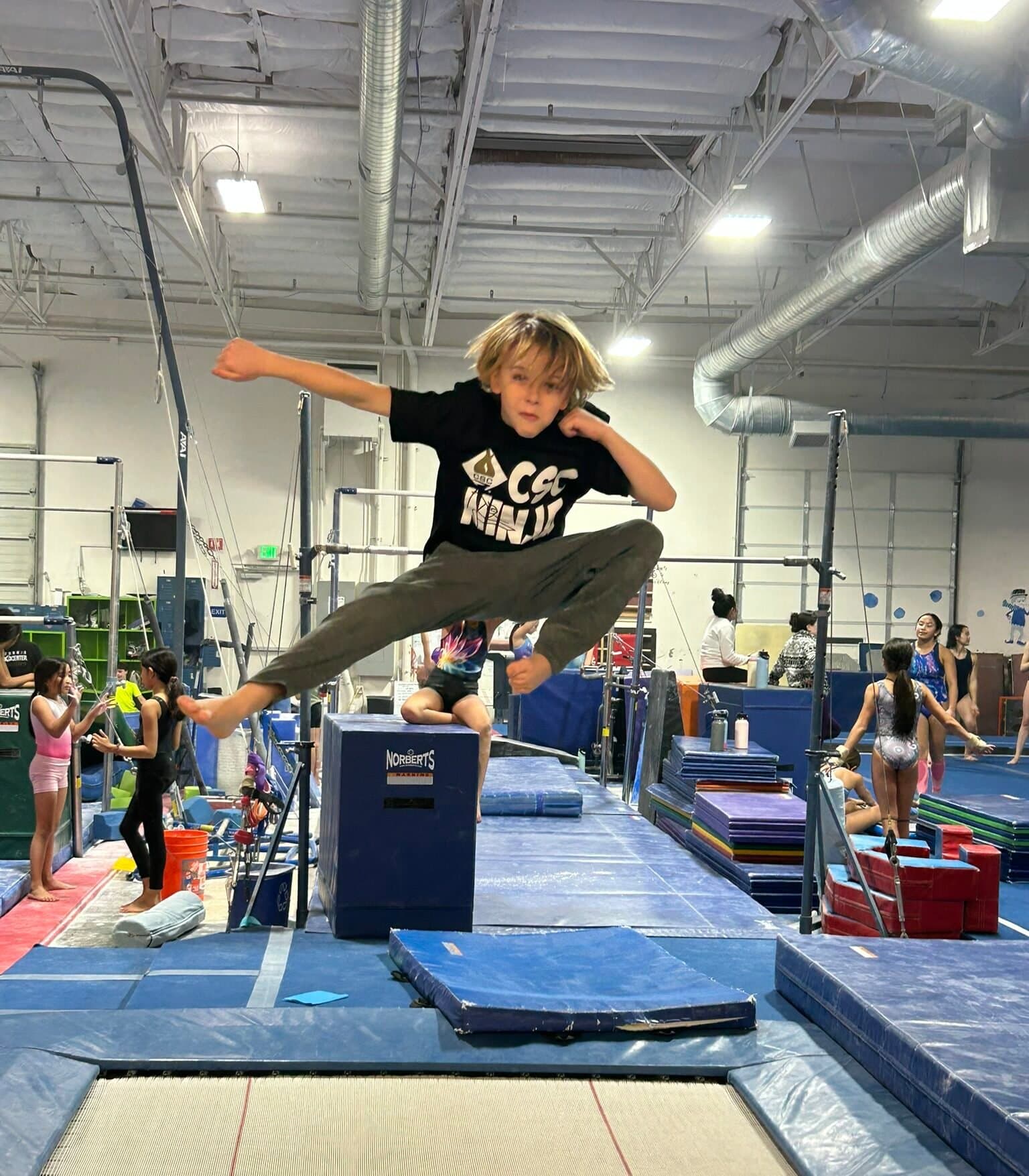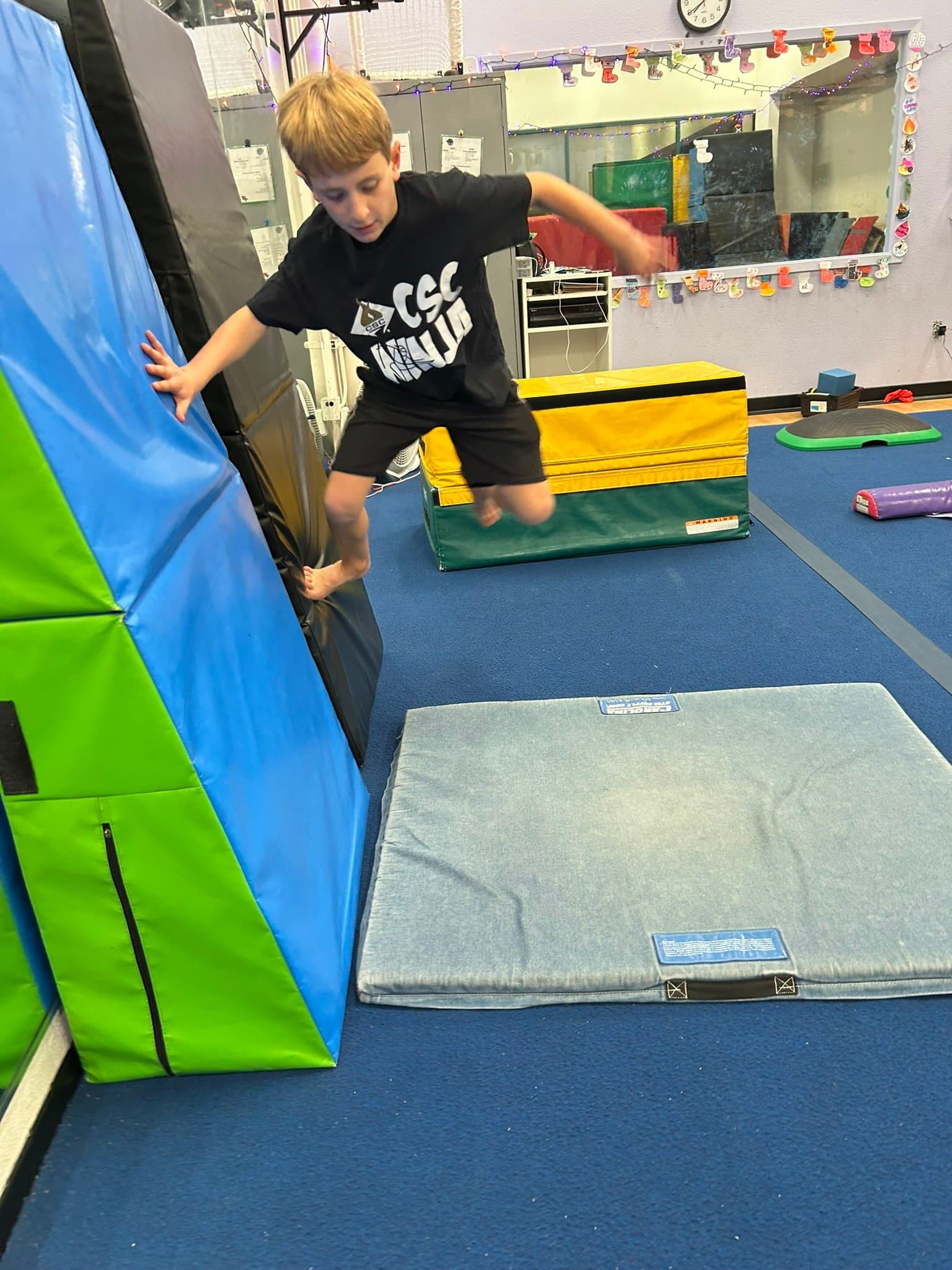 CSC Ninja classes challenge kids with exciting ninja maneuvers, speed courses, and street-style tricks, all based on gymnastics foundations and progressions.